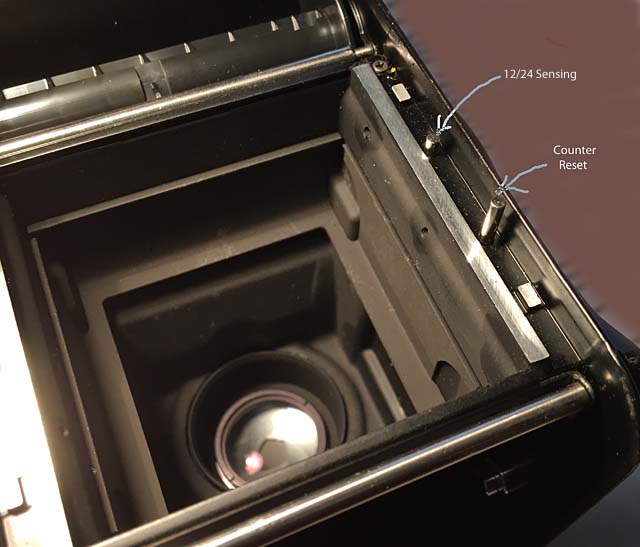 There is a simple film reminder function integrated into film knob. Wind to 1 in window. Use the beautifully finished chrome plated wheel on the bottom open the back up. The focal length is fixed but the lenses have bay 1 mounts to which filters lens hoods and close up lenses can be fitted.